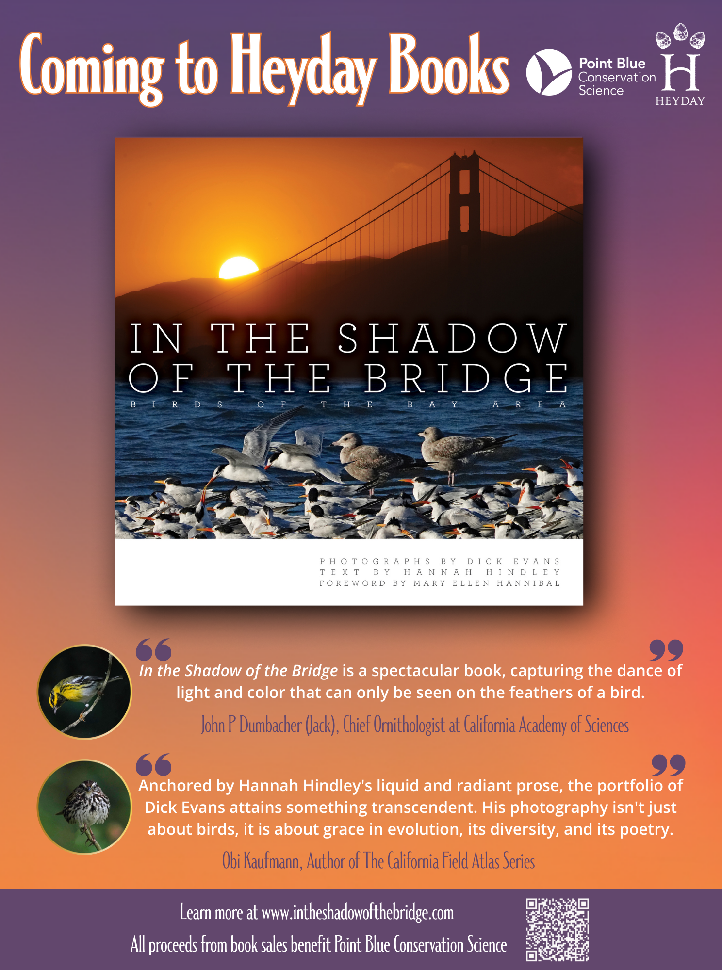 Photographer Dick Evans and publisher Heyday Books required print and digital assets to promote the book Evans co-authored with Hannah Hindley, the proceeds of which support Point Blue Conservation Science.